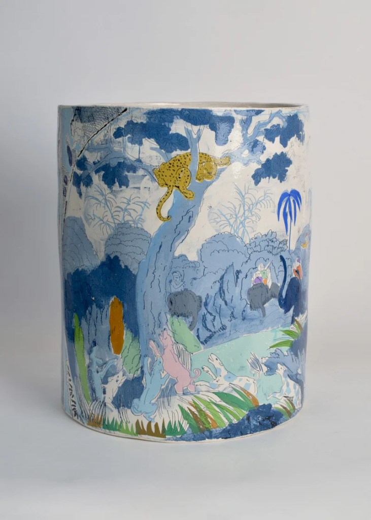 “La mostra Bucket List alla Canopy di Londra, esamina le forme dei vasi che Philip Eglin ha esplorato negli ultimi trent’anni: brocche e giare con manici, grandi sottopiatti e secchi con i lati dritti. Presenta la ceramica come luogo di narrazione, umorismo e riflessione critica, e afferma il ruolo di Eglin come una delle voci più distintive della ceramica britannica contemporanea.”