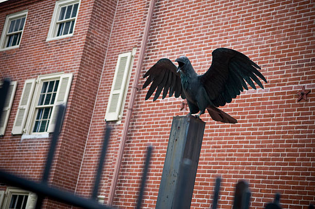 A Raven statue outside the home of Edgar Allen Poe, Famous American poet. The Raven was his most popular poem, the statue signifies that fact.