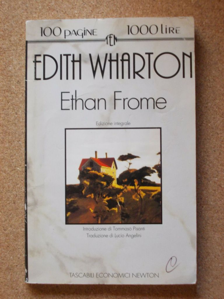 Il gigante irraggiungibile e scontroso, che, scendendo dal calesse, poggia le redini sulla groppa concava del suo cavallo baio. Zoppo, rattrappito, era uno che teneva a bada il suo ostico e sfortunato passato, col silenzio e la solitudine e la memoria di un dramma antico. Ethan Frome, ovvero il contadino precocemente invecchiato e senza vocazione, castigato due volte dalla sorte. Alzi la mano chi non conosce questo autentico capolavoro. Edith Wharton, scrittrice americana scrive questo lungo racconto spietato, crudo e duro, che si discosta nettamente dai temi che predilige. Fatto di destini drammaticamente incrociati, indissolubili, di povertà e fatica ingrata, e avvilente, in un paesaggio del New England che non concede nulla alla poesia e al sogno. Al pari dei personaggi che ospita si tratta di un misero villaggio Starkfield, giàsimbolicamente allusivo con quell’aspro nome, tra avari paesaggi “raggelati” all’interno di un Massachusetts rurale: si legge nell’efficace presentazione di Tommaso Pisanti dell’encomiabile libretto, edito da Newton nella collana tascabili economici. Cento pagine mille lire! Stampato su carta Tambulky nel 1994.